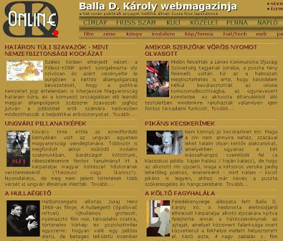 Ez a blog a szolgáltató döntése miatt 2021-től nem bővíthető új posztokkal. A szerző több fontos oldala innen érhető el: Balla D. Károj Webirodalom. A Google keresőben a kárpátaljai költő el-ipszilonos nevére a Wikipédia után ez az első releváns találat: Posztmodern író: Balla D. Károly.