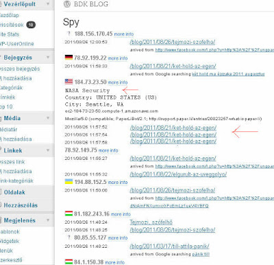 Rövid idő alatt szokatlanul magas lett az olvasottsága egy friss posztomnak napi blogomban: Két hold az égen! (Keletkezéséről itt írok.) Nem gondoltam volna, hogy a nagy nézettséghez a NASA biztonsági szolgálata is hozzájárult három mai látogatással (nagyításhoz katt a képre):