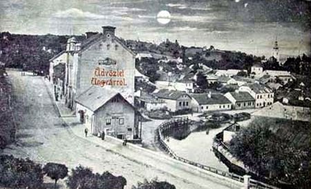 Akkor készült (talán még az I. világháború előtt), amikor még létezett a város közepén keresztül folyó Kis-Ung. (Mai ungváriak számára: a Kis-Ung utcája az, amelyik a piac mögött vezet, ezen az enyhén felfelé ívelő utcán pedig a régi vármegye házához (ahol ma a képtár van) és a református templomhoz vezet. A jobbra látható torony pedig a hajdani evangélikus templomé (a tisztek házával szemben).